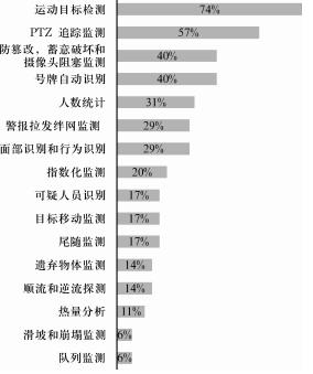 在一個多選題中運動探測的得分最高的問題是“什么是視頻設(shè)備分析應(yīng)用”,74%的用戶都會選擇這個問題。非安全相關(guān)方面應(yīng)用得分最高的題是號牌自動識別,40%的受訪者認(rèn)為這將適用于安防,公路安全,治安和交通擁擠收費等方面。