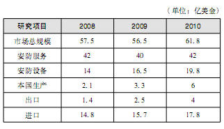到2010年末,俄羅斯安防市場總規(guī)模達(dá)到61.8億美金,以下為2008~2010年末相關(guān)數(shù)據(jù):