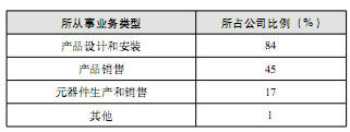 俄羅斯各安防企業(yè)所從事的業(yè)務(wù)活動也不盡相同,基本業(yè)務(wù)活動分為四類,包括產(chǎn)品設(shè)計和安裝、產(chǎn)品銷售、元器件生產(chǎn)和銷售以及其他,所占比例如下表: