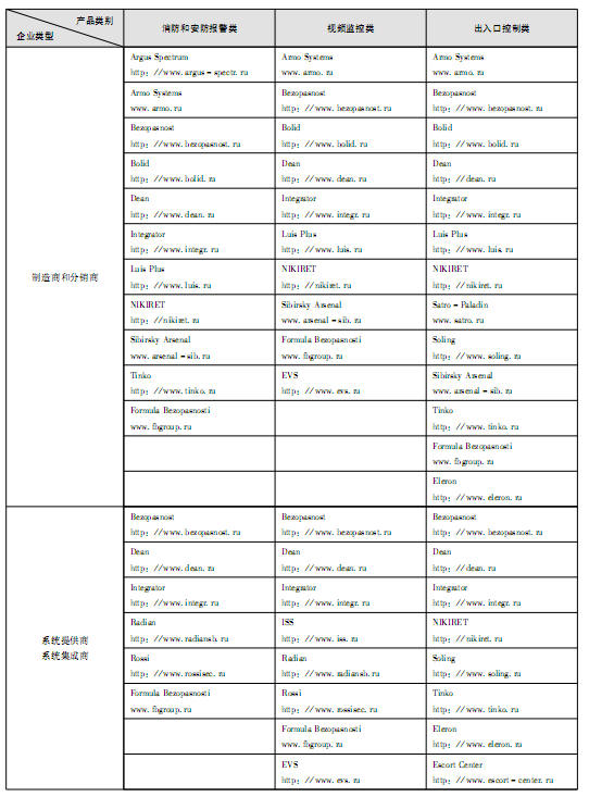 為了便于我們國內(nèi)有意向進(jìn)入俄羅斯市場的企業(yè)準(zhǔn)確尋求到俄當(dāng)?shù)乇容^有實力的合作商,現(xiàn)將這300多家安防企業(yè)內(nèi)具備較強(qiáng)實力的公司列出,供我們國內(nèi)企業(yè)參考,詳情見下表: