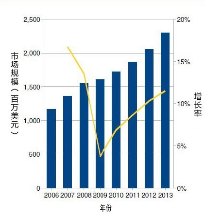 根據(jù)估算,全球民用安防市場將從2011年的200億美元增長到2017年的340億美元,在2011和2012年美國所占全球安防市場份額達(dá)到55%以上。