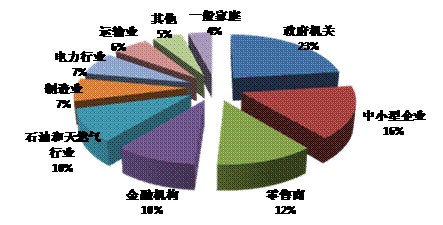在俄羅斯,安防產(chǎn)品的主要消費(fèi)者是政府機(jī)關(guān)、銀行、國防企業(yè)、石油天然氣行業(yè)、電力行業(yè)、通信業(yè)以及其他行業(yè)。石油天然氣行業(yè)、政府機(jī)關(guān)和電力行業(yè)仍然是安防設(shè)備的首要使用者。