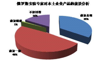 安防市場上,一些部門發(fā)現(xiàn)俄羅斯國產(chǎn)商品日漸取代了進(jìn)口設(shè)備。與西方相比,俄羅斯國內(nèi)制造商的主要優(yōu)點(diǎn)是低價(jià)位,且靈活性、適應(yīng)性強(qiáng)。安防技術(shù)社會學(xué)服務(wù)處的數(shù)據(jù)表明,35%的專家認(rèn)為俄羅斯安防市場的前景是好的;48%的認(rèn)為不夠好;1%認(rèn)為不好;16%的人覺得不好回答。