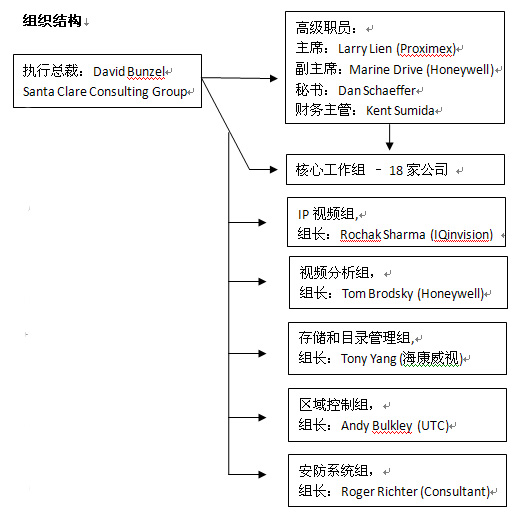 PSIA聯(lián)盟主要為會(huì)員單位提供不需要任何許可授權(quán)的標(biāo)準(zhǔn)和規(guī)范,并對(duì)整個(gè)行業(yè)秉承“開放、合作”的原則。目前,為五個(gè)工作組提供了統(tǒng)一的標(biāo)準(zhǔn)和規(guī)范,包括IP視頻組、視頻分析組、存儲(chǔ)和目錄管理組、地域控制組和安防系統(tǒng)組。