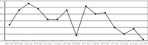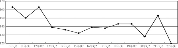 2022年二季度,我国安防行业景气指数为130,与上季度相比下降19个百分点,比去年同期下降39个百分点,位于"较景气区间"(见图11)。调查企业中,有43%的企业认为经营状况处于"良好"状态,与上季度相比下降12个百分点,比去年同期下降33个百分点;有44%的企业认为"一般或持平",比上季度上升5个百分点,比去年同期上升了27个百分点;有13%的企业反映经营处于"不佳"状况,比上季度上升了7个百分点,比去年同期上升了6个百分点。