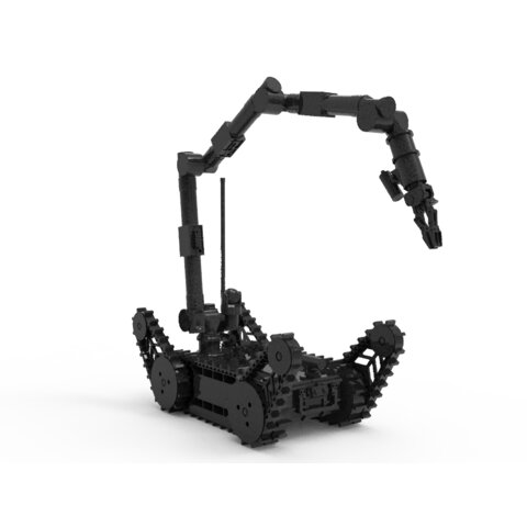 该产品是一款可搭载多种任务模块开展排爆作业的履带式小型排爆机器人。该机器人由移动底盘、机械臂、末端执行器、视频模块、通信系统和手控控制终端等组成。产品采用模块化设计,可快速免工具式组装,以完成不同的作业任务。其主要特点是小型化、工具化,可在拆装各模块后装入背包携带。其作业机动性高,可快速进入狭小空间内完成爆炸物处置任务。通过使用该机器人装备可大大降低排爆作业危险性,并有效提高排爆效率。